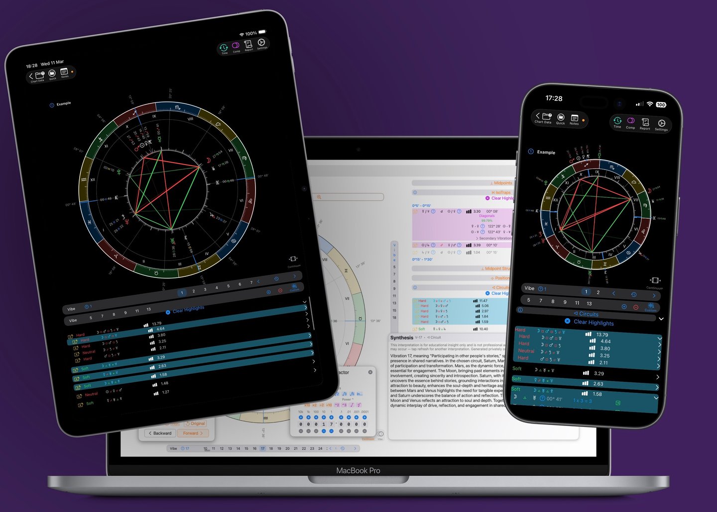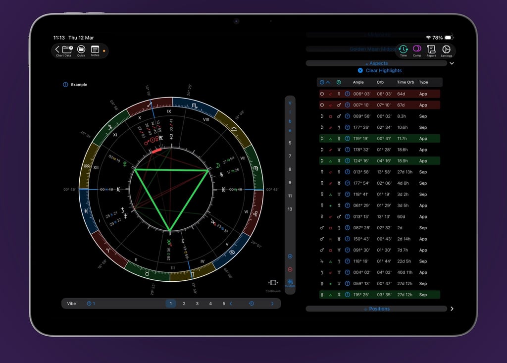 VisualAstro handles the complex calculations so you can focus on what truly matters: interpretation. With smart data organization and dynamic insights, you’ll instantly spot the defining features of any chart—and uncover the hidden details that make all the difference. With just a tap on the screen, you can highlight anything on the chart.