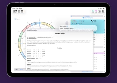 VisualAstro is built on a solid foundation: Vibrational Astrology (VA) is supported by ongoing research, a community of practitioners, and certified Study Guides. We've integrated these trusted resources throughout the app, providing contextual guidance and validated meanings to inform and enrich every interpretation.